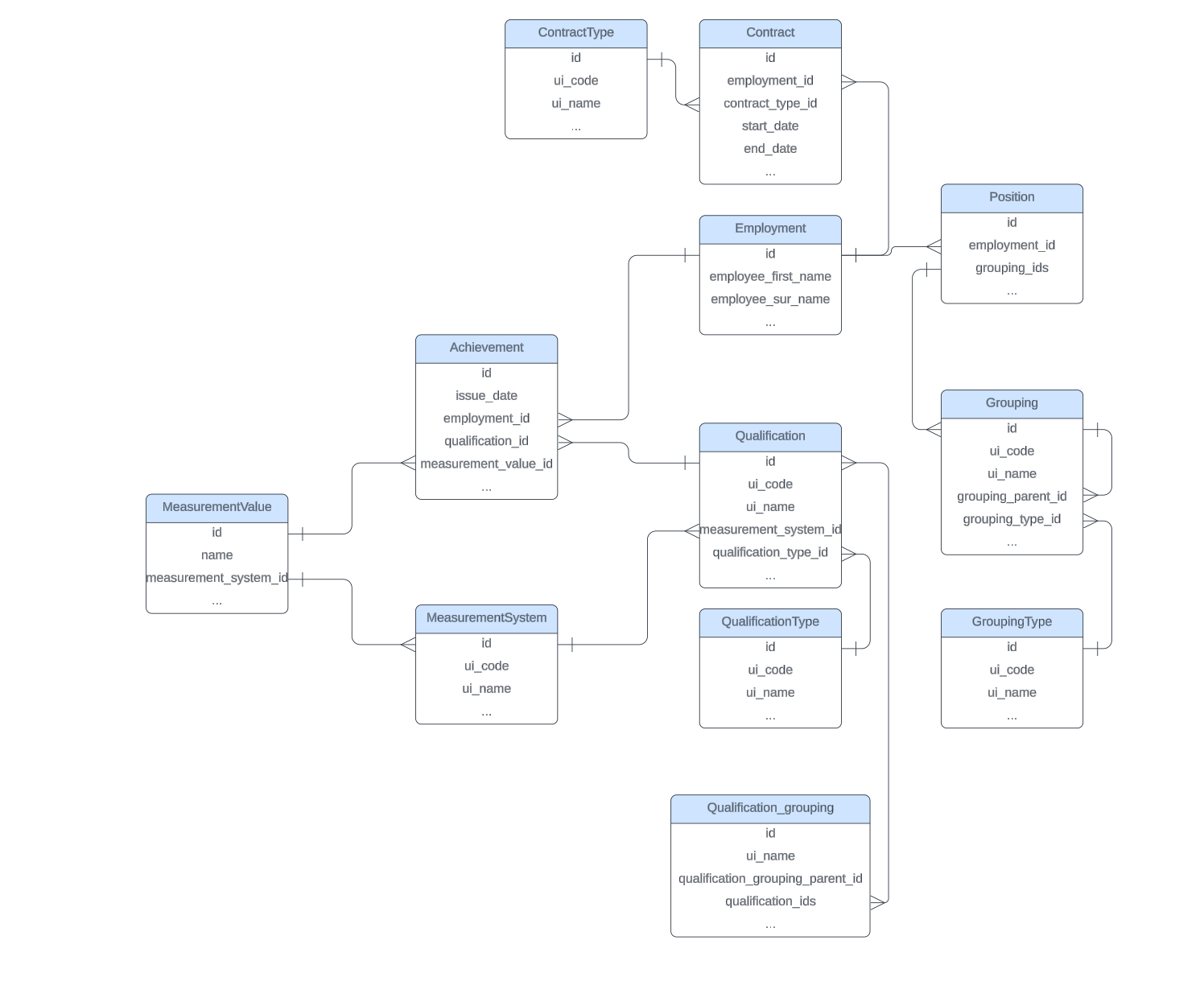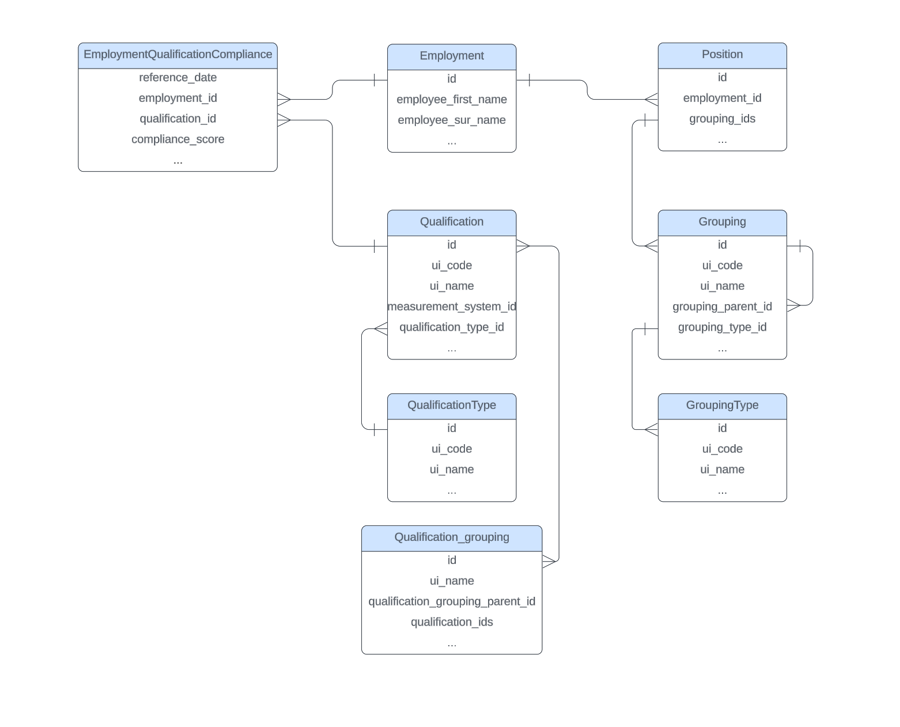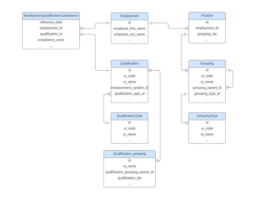 EmploymentQualificationCompliance (Event) and Employment, Position and Qualification (Entities) relationship.