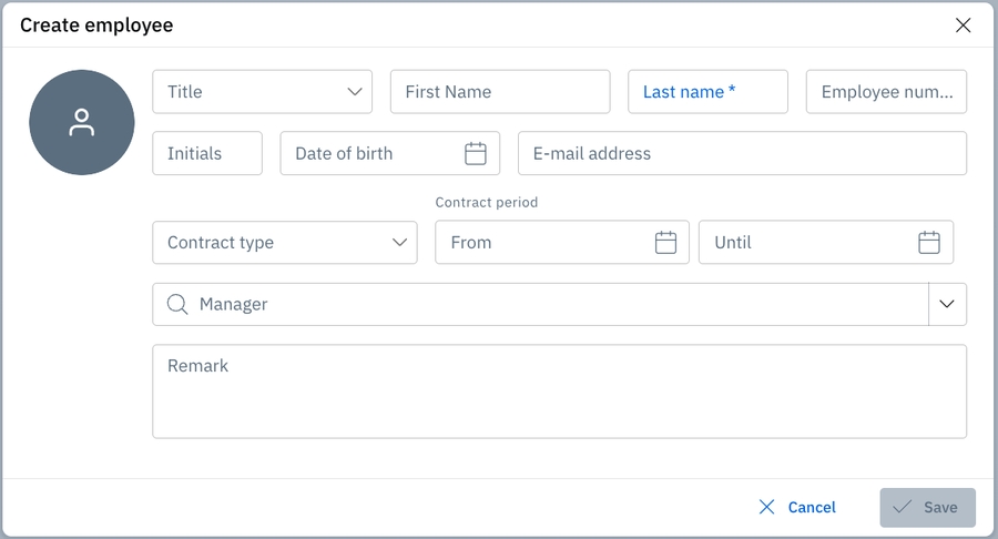 'Contract period' determines an employee's visibility in other areas of AG5, such as matrices, organizational structures, the alert list and expert finder. If an employee's 'Until' date is set to past date, then the employee is inactive and will not appear in matrices, organizational structures or the alert list.
