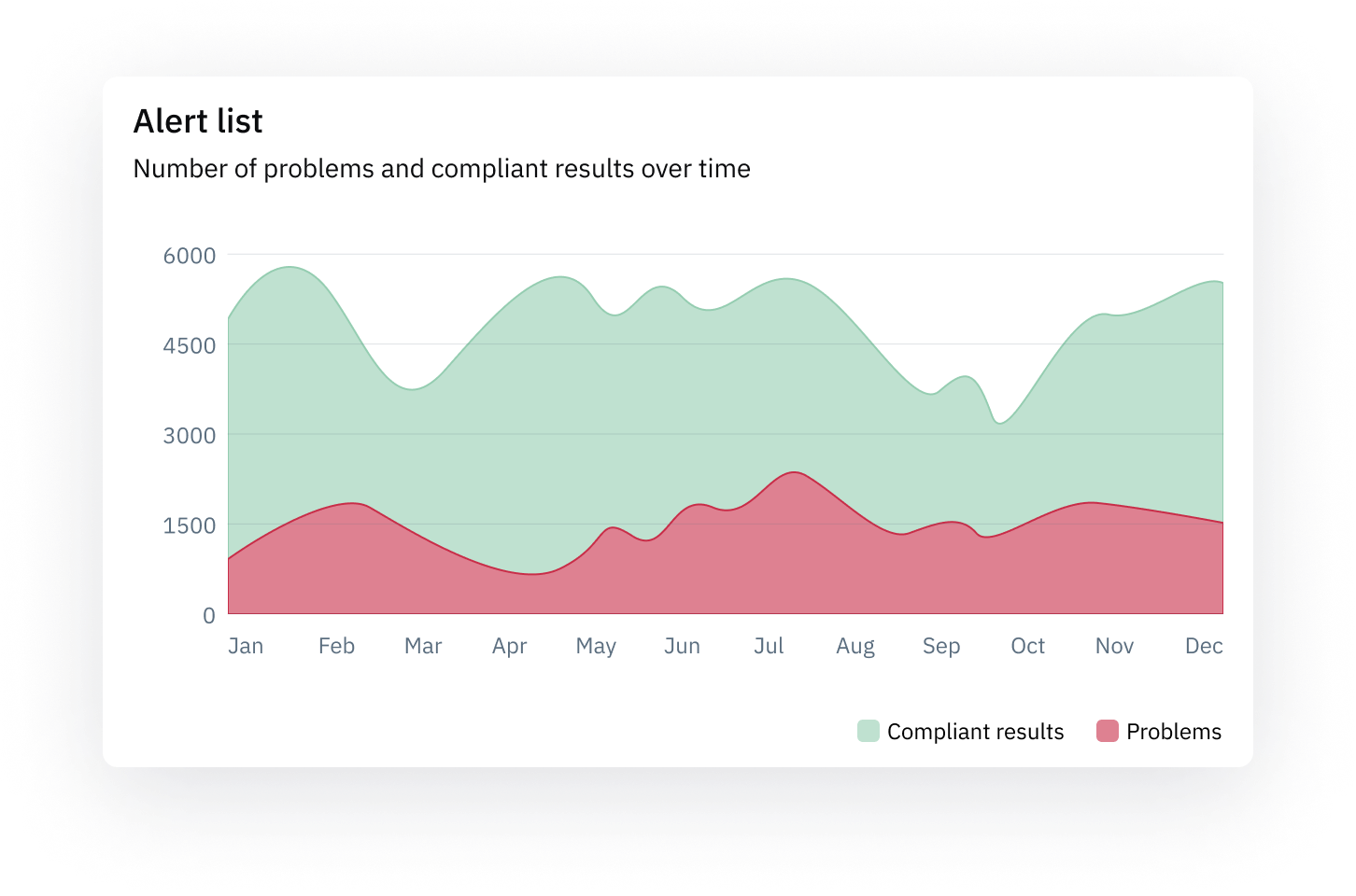 The way this percentage is calculated is explained in the Compliance-card section above. The only difference is that in this chart, this calculation is done for each 12 months individually, so you can see a trend over time.