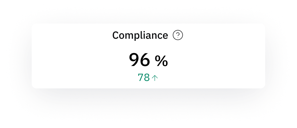 A red downward arrow (▼) would indicate a decrease in compliance or compliant results, which may require attention.