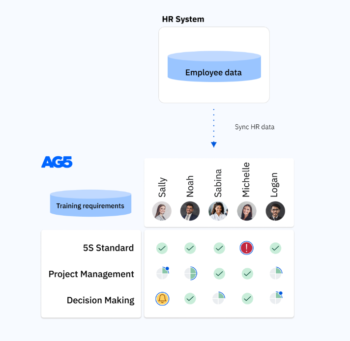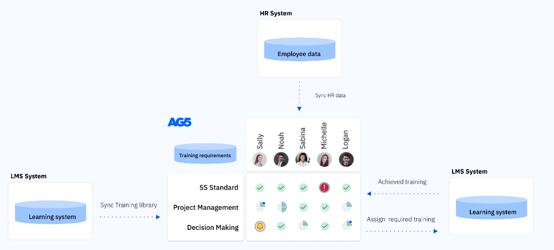 AG5 then serves as the central hub for all training requirements, enhancing assignment capabilities. When training requirements align with HR and operational structures in AG5, employees are automatically assigned relevant training in the LMS, ensuring accurate allocation.