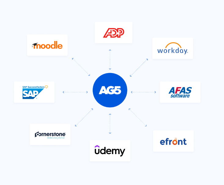 AG5 often is and can be integrated with your Single sign-on identity provider (SSO), your Human Resource Management System (HRMS) and your Learning Management System (LMS). Integration with planning software is also possible.