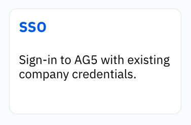 Single Sign-On (SSO) is an authentication and authorization method that enables users to access AG5 using their own identity provider, eliminating the need for multiple usernames and passwords. This simplifies login for employees, reducing security risks. AG5's SSO Integrations adhere to the SAML2 standard.
