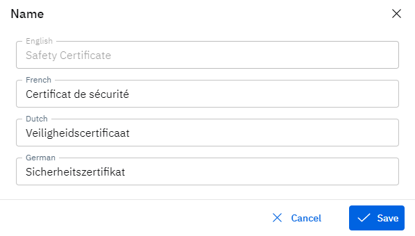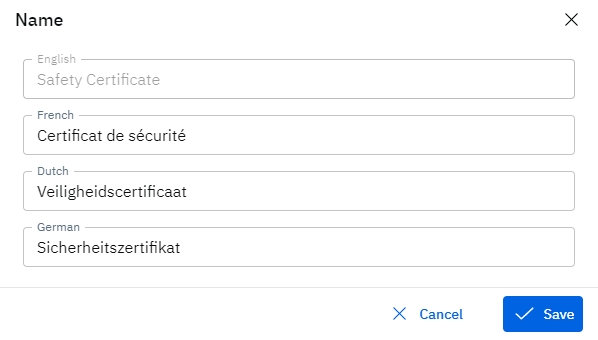 Clicking on the icon will open a dialogue you can use to specify translations per enabled language.