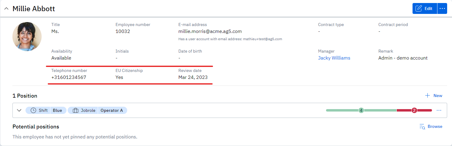 3. Max amount of custom fields is 4. (Employee as well as Qualifications can have 4)