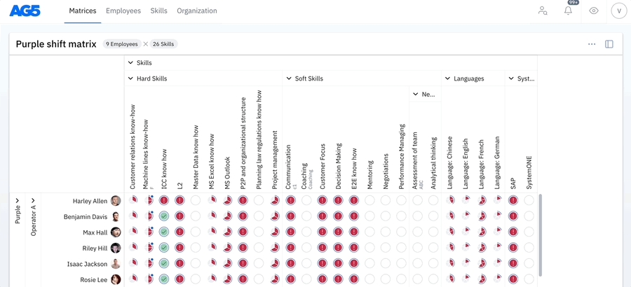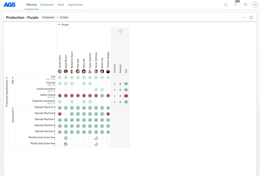 AG5 offers a range of features—like dynamic skills matrices, automated notifications, and intuitive reporting—to help you stay compliant and close skill gaps across your organization. Check out our feature-specific articles to learn more.