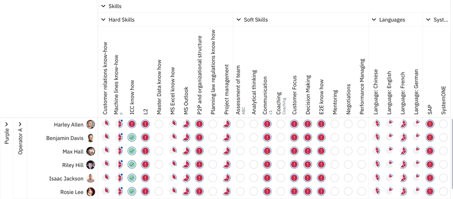 Compliance per Skill and Employee. Quickly assess compliance levels for each skill and individual employee